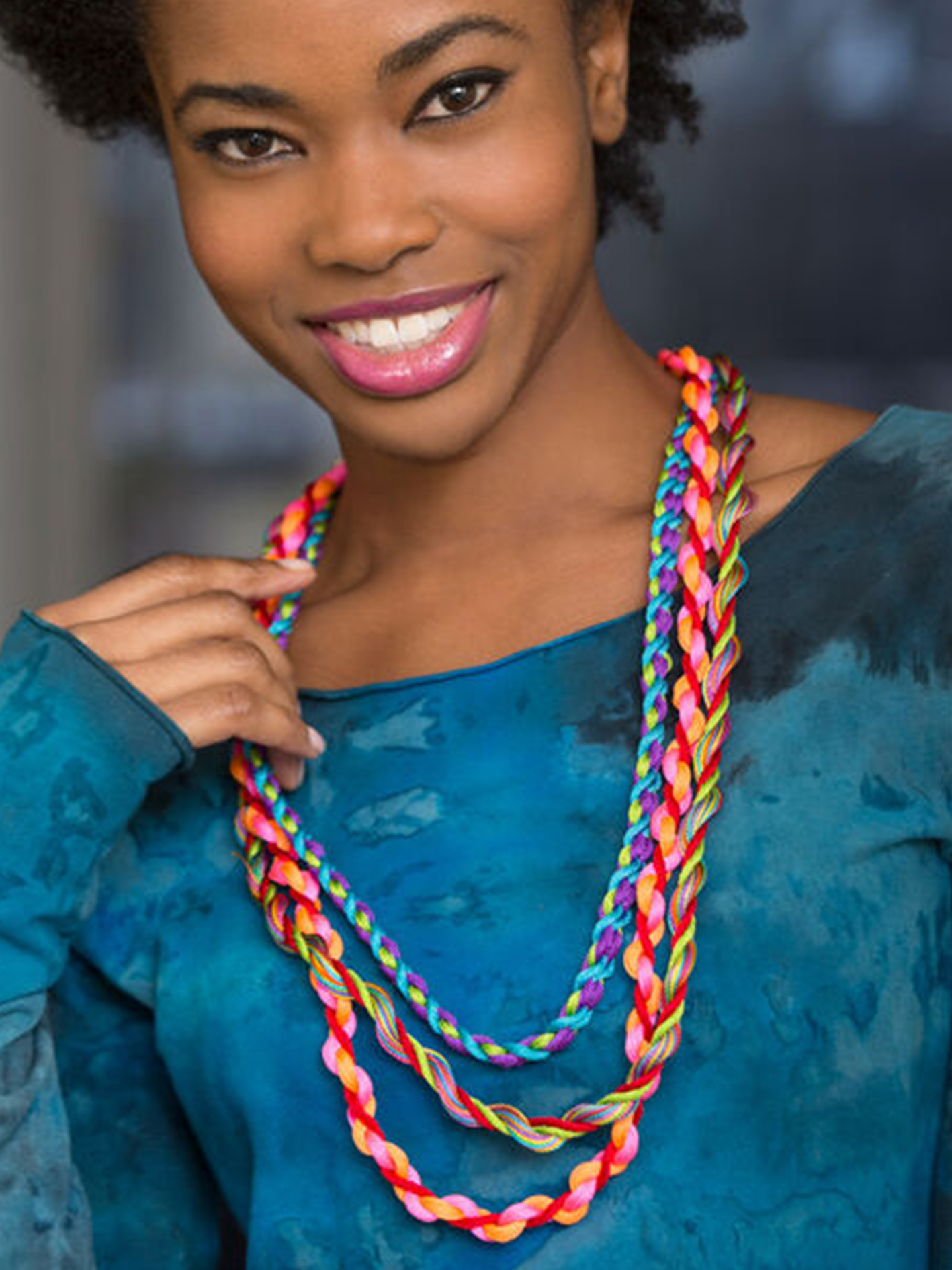 Add a splash of color to your outfit with these twisted necklaces. Our instructions give you the special (but not difficult) techniques you’ll need to know. Choose from three different lengths that can be worn all together or singly: Cable Car Twist, Tosca Twist or Haight Street Wiggle.